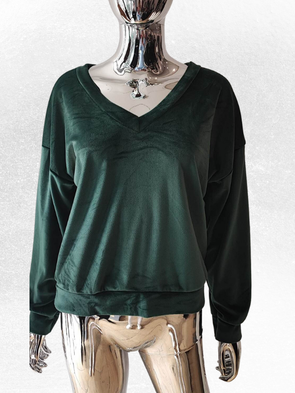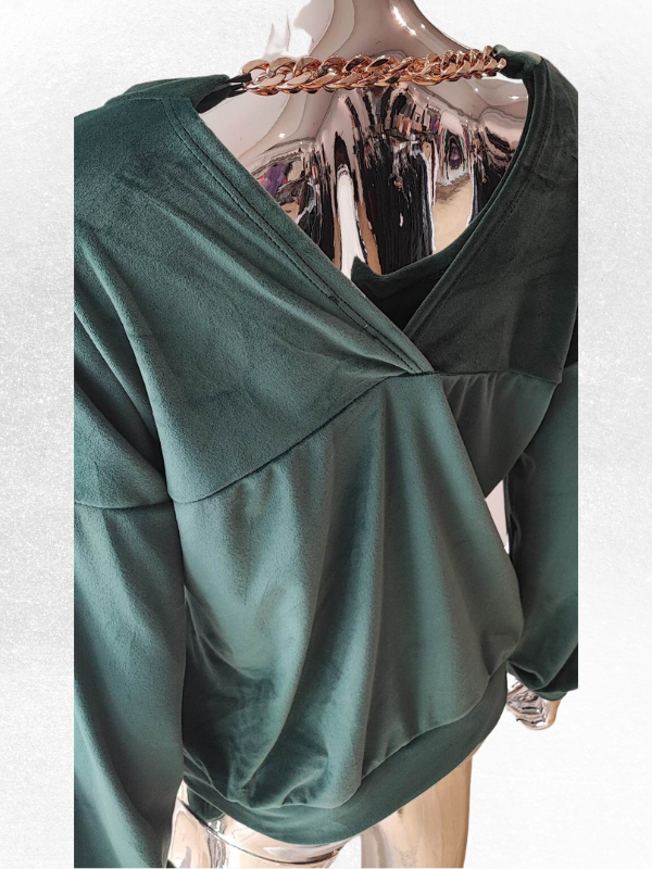 Ta piękna zielona bluza welurowa to idealny wybór dla każdej kobiety, która szuka wygodnego i stylowego dodatku do swojej garderoby. Wykonana z miękkiego i przyjemnego w dotyku materiału, ta bluza zapewni Ci komfort noszenia i wygodę przez cały dzień.