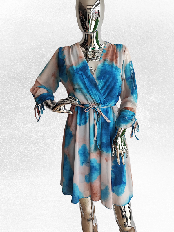 Sukienka NIEBO to wyjątkowy element garderoby, który przyciąga uwagę i dodaje kobiecej stylizacji elegancji oraz wyrafinowania. Wykonana została z wysokiej jakości materiałów, które zapewniają wysoki komfort noszenia.