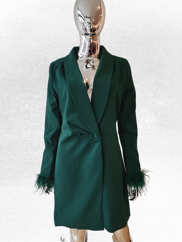 Sukienka żakietowa z piórkami to idealna propozycja dla kobiet, które cenią sobie elegancki styl i wygodę. Wykonana jest z wysokiej jakości materiału, który gwarantuje trwałość i komfort noszenia.